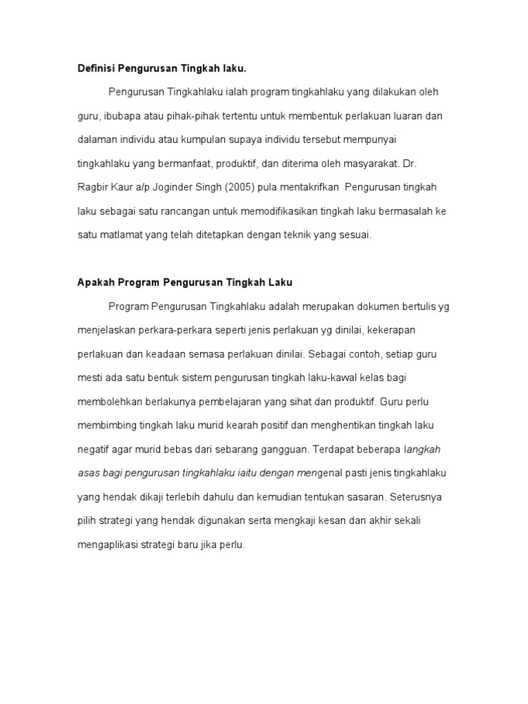 Definisi Pengurusan Tingkah Laku Pdf