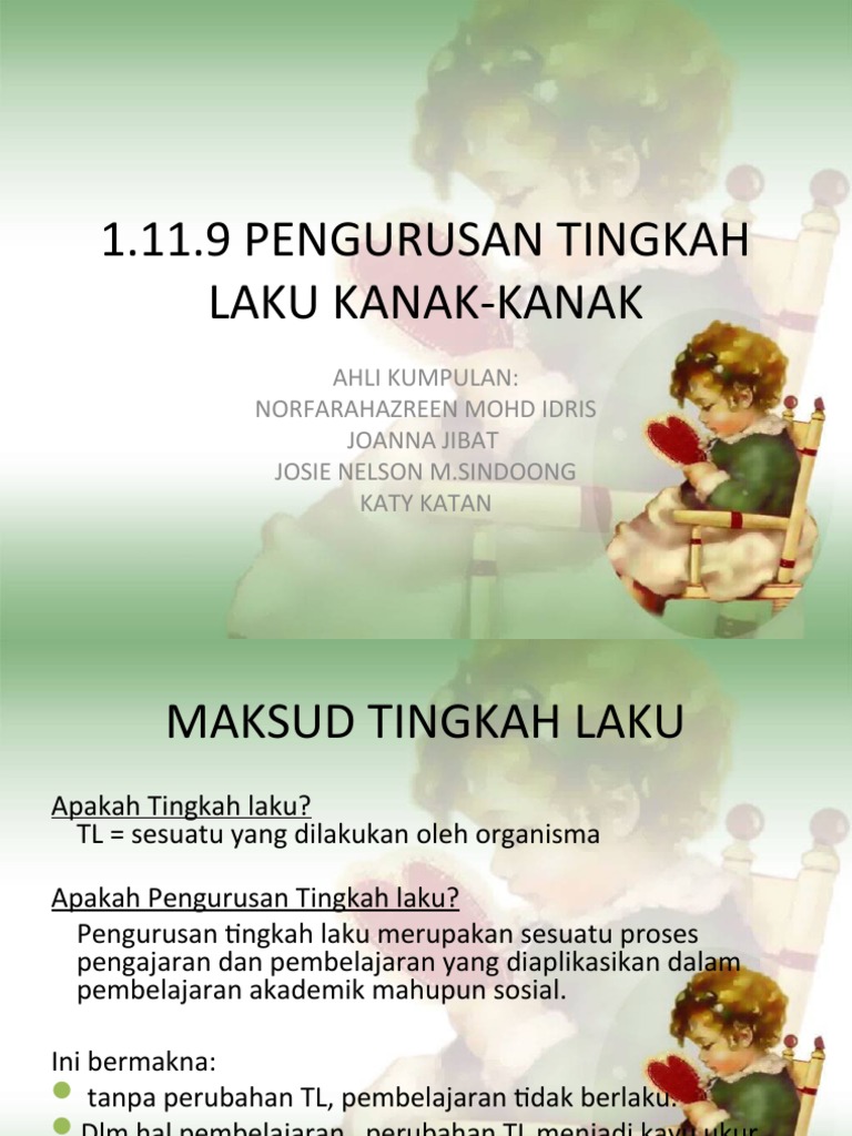 Pengurusan Tingkah Laku Sifatku Perubahan Dalam Tingkah Laku Murid Prasekolah